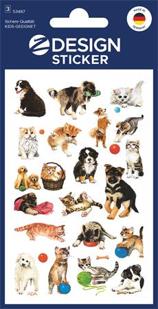 Matrica, papír, 3 ív, 76x120 mm, AVERY ZWECKFORM, "Z-Design No.53487", macska és kutya